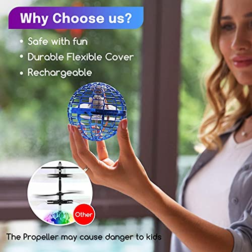 - 【Safe Design And Durability】: The flying orb toys conducted rigorous tests. Materials is very soft, the protective shell of spherical design is adopted to ensure the safety, the durability and impact resistance of the flying ball toy.