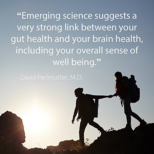 Details: Dr. Formulated Probiotics Mood+ is a unique probiotic formula with clinically studied strains to support mood and includes organic ashwagandha and organic Alaskan blueberries—all in just 2 capsules a day. Emerging science is showing a link between gut and brain health. Dr. Perlmutter created this unique formula with 16 probiotic strains including clinically studied probiotics L. helveticus R0052 and B. longum R0175 in the amounts clinically shown to support mood and relaxation. Mood + also has 350mg of organic ashwagandha and organic Alaskan blueberries.