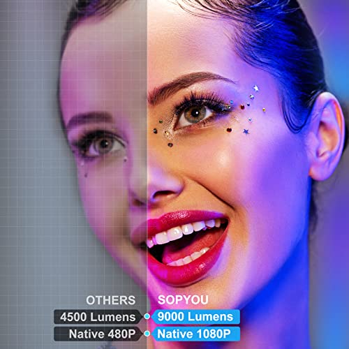 Mini Projector, Native 1080P Full HD 9000L SOPYOU Movie Outdoor Projector